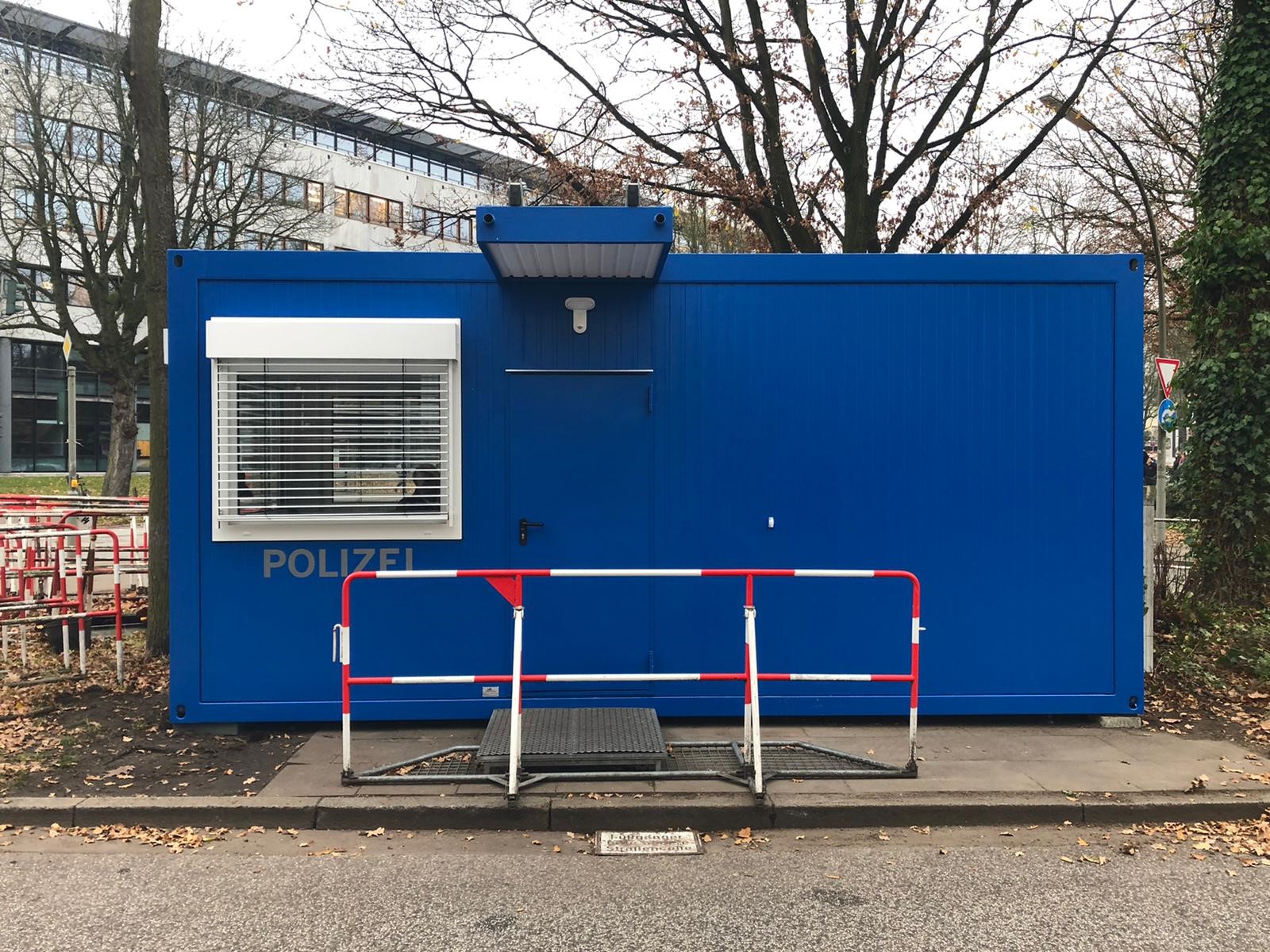 Die Polizei Hamburg freut sich über Ihren schönen neuen und vollausgestatteten Wachcontainer in repräsentativem Blau.